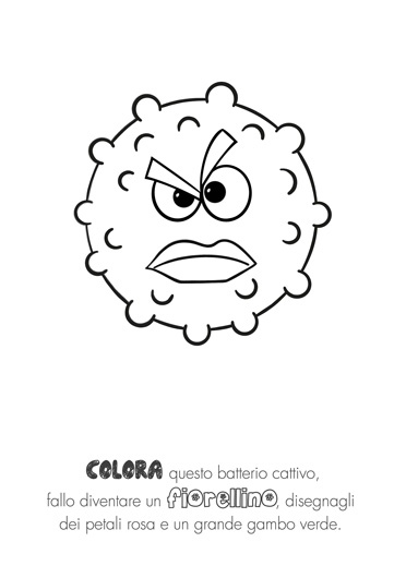 Fai la guerra ai batteri! Tanti disegni da colorare per il tuo bambino. Homepage > Area giochi > Disegni IDEALE PER TESSUTI E SUPERFICI MORBIDE SPRAY DISINFETTANTE Disinfetta tutte le superfici, in particolare tessuti d’arredo e superfici morbide, lasciando un gradevole profumo. SCOPRI DELLA STESSA LINEA SONO DISPONIBILI ANCHEPAVIMENTI DISINFETTANTE Disinfetta le superfici e diffonde nella tua casa un piacevole profumo. SGRASSATORE DISINFETTANTE La forza pulente dello sgrassatore unita all’azione disinfettante e alla piacevolezza delle essenze di origine vegetale. BAGNO DISINFETTANTE Rimuove il calcare e lascia le superfici del bagno pulite, brillanti e con un piacevole profumo. DisegniI batteri sono brutti e cattivi? Dagli una lezione, o meglio, lascia che a farlo sia tuo figlio! Scegli insieme a lui il batterio che vi ispira di più e stampalo: il tuo bambino potrà colorarlo e divertirsi a renderlo innocuo! Scarica i disegni da colorare!
